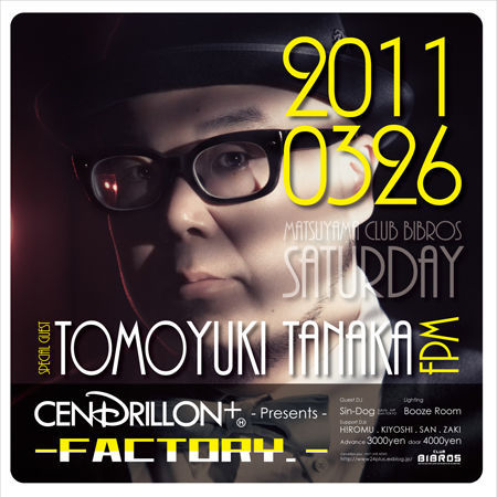 管理人様、告知失礼致します。 今月26日(土曜日)の CENDRILLONplus present's!!! -FACTORY.-のゲストはコノ方です! 田中知之 / Tomoyuki Tanaka (FPM) DJ/プロデューサーとして国内外で活躍。 ダンスミュージックに自身のルーツを散りばめた独自の音楽スタイルがワールドワイドに支持され、6枚のオリジナルアルバムのリリースの他、Chara、RIP SLYMEなど多数のアーティストのプロデュースも手掛ける。 DJとしても国内は全都道府県制覇、海外では約50都市でのプレイ実績を持つ。 またリミキサーとしても、現在まで約100曲