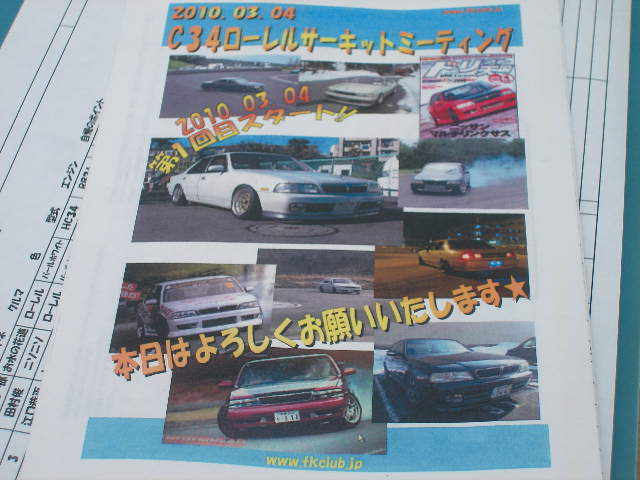 20110304 C34ローレルミーティング いくぜ! 皆様! いつもいつも盛り上がってますか? また勝手に企画させていただきます。 勝手にC34を語ってしまってごめんなさい! さて、今度(来年)のローレルさんのミーティング 埼玉県の本庄サーキットで行なわせていただく運びです。 2010年のジムカーナ場では『皆で楽しめればいいな』でしたが 皆さんもっと暴れたかったみたいで(笑)色々ご意見を頂戴しました。 今回コースなのでこんなクラス分けなんかを考えています。 ・初心者クラス→エンカキぐるぐる。ワンコーナー出来ます。