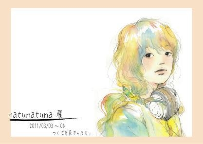 natunatuna展 日付:2011年03月03日(木)〜06日(日)4日間開催 場所:茨城県つくば市民ギャラリー(エキスポセンター前) 時間:10:00〜16:30 (最終日は15:00) 料金:入場無料 ---------------------------------------------------------- 去年、好評のうちに、 幕を閉じた、natunatuna展。 また、今年も同じ場所で開催致します。 1年間彼女が描いてきたものや、 この展示のために書き下ろしたものなどを展示します。 これが、1年に1回というものを目標にしていきたいと思います。 また、本人による似顔絵や、 好評のポス