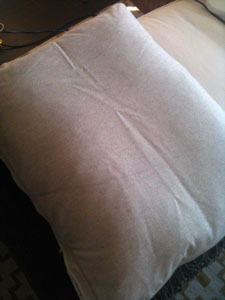 IEKAのクッション KARLSTAD http://www.ikea.com/jp/ja/catalog/products/80174586 白(ナチュラル)とベージュの2つあります。 写真を撮ったのですが、あまり色がよく出なくてスミマセン>< (箱に1週間入れておいたので真ん中にしわもありますが、放置すればとれると思います。 また、カバーははずして洗濯できます) 58×48センチと結構大きめ、中はフェザーです。 1年ぐらい家にありましたが、汚れ、シミなどは発見ありません。 【受け渡し方法】 取りに来てくださる方、宅配で受け取ってくださる方、どちらも歓迎。 宅配の