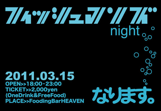 お知らせです。 15日に開催を予定していた fishmans night@成増heavenを 余震等もおさまらない関係で安全を考え延期させていただくことになりました。 本当に申し訳ございません。 何とぞ、ご理解宜しくお願い致します。 皆が笑顔で心から楽しめるようになったら 3月15日ではないのですが、開催したいと思いますので その時はまた宜しくお願い致します。 みなさんお久しぶりです! 5月に野音決定しましたね♪ ってことで3月15日は成増にくるってのはいかがですか?!笑 今年もありがたい事に板橋区成増にある fo