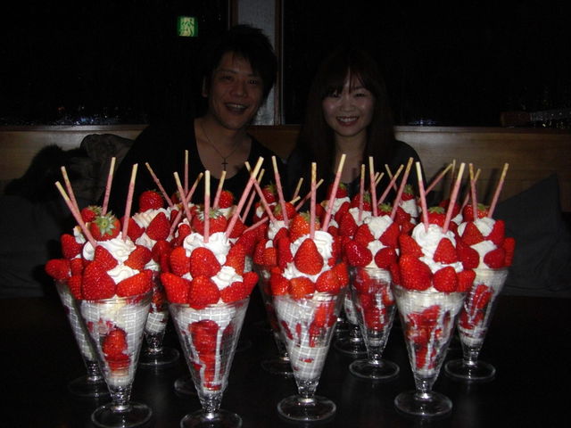 今年で何回目だろ・・・?(^_^;) 今年もこの季節がやってまいりました ほんま・・・マジで恒例行事になりました カサブランカの苺フェア さて今年はテーブルに何個苺パフェを並べることが出来るでしょうか あっ、一応・・・花見の打ち合わせ・・・ってのが名目です(^_^;) 気軽なイベントなんで普段絡みのあまりない方も気軽にパフェを食べに来て下さい 注)当日、食事も出来ますので毎年の流れとしましては食事してデザートにパフェを食べる・・・って感じです