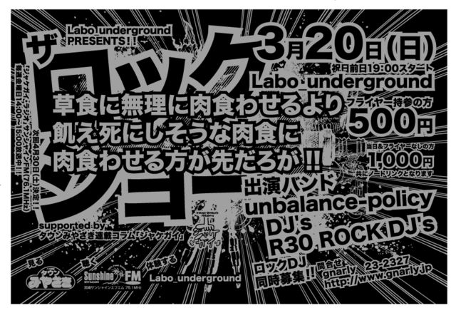 ◎ジャンルはタイトル通りロック全般、Labo underground主催の「ザ ロック ショー」が開催決定!!