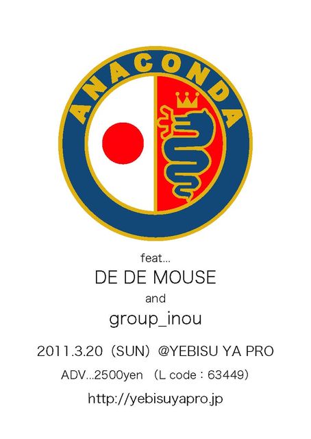 DE DE MOUSE & group_inouが岡山に、@YEBISU YA PROに、「ANACONDA」にやってきます!!