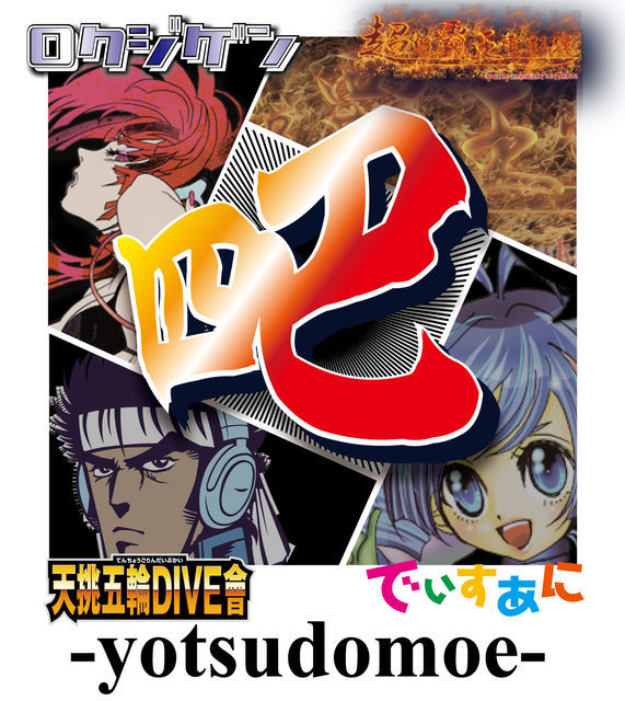 ロクジゲン、でぃすあに、超級覇王電影弾、天挑五輪DIVE會。 新宿を拠点とする四つのイベントが激突! 時間も19時〜5時に増量!! ものどもよ、つどえ。 よつどもえ! 四巴-yotsudomoe- [日時] 2011-03-20(sun) 19:00-05:00 [料金] \2000(1d)/mixi:\1500(1d) [DJs] ゲスト: GERU-C閣下(ota96/皿師屋) くくり(ヲタリズム/ANISON 199X) ロクジゲン: youthaqua TETU★KID U8 でぃすあに: POGI しずか 千尋 超級覇王電影弾: ぼしゅ イッキ 県人 天挑五輪DIV