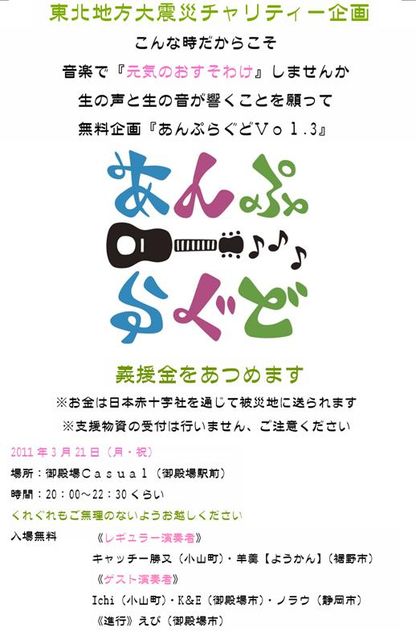 ※入場料の全ては東北地方太平洋沖地震で被害にあった子供達のために寄付します。