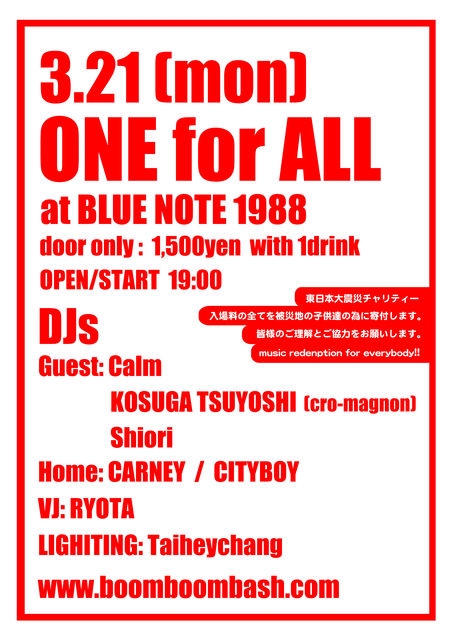 BLUE NOTE1988にて東日本大震災チャリティーイベントを開催します。