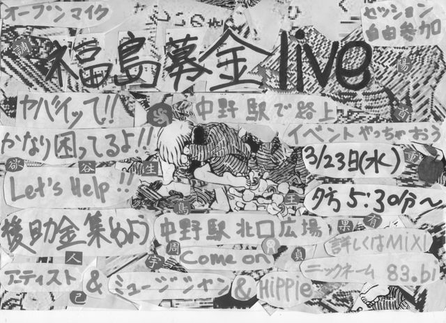 もし雨。メルトダウンが起きない限り、3月23日 水曜日 夕方5時30分から東京都中野駅北口広場にて福島募金LIVE<オープンマイク、自由参加セッション>を行います。