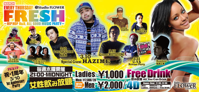 :::::: 3/17(木)よりFLOWERにてチャリティイベントスタート!! 毎週木金土開催!! ::::::