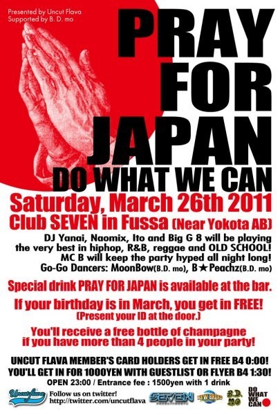 【3/26(土) PRAY FOR JAPAN @ 福生SEVEN(元JELLY)】