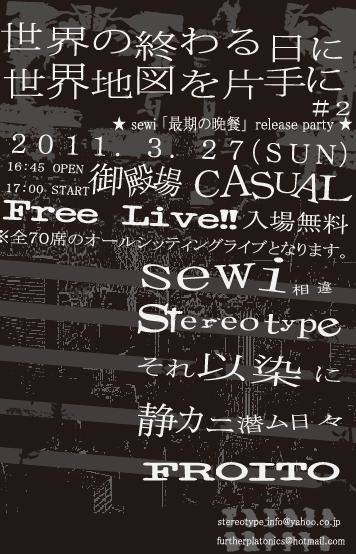 2011年 3月27日(日)11:00〜18:00 フリータイム