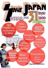 まず、3月31日にUFVで東北地方太平洋沖地震で被災した方々に義援金を送るためのチャリティーイベントをやります!