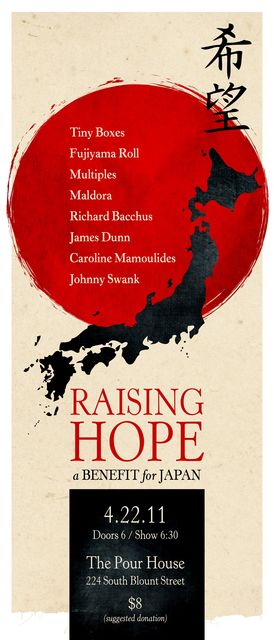 Japanese Rock/Pop band FUJIYAMA ROLL http://www.reverbnation.com/fujiyamaroll will be playing at the Pour House Music Hall in Raleigh http://www.the-pour-house.com/ on Friday 4/22. Suggested donation $8. It's a fund raising show and the donation goes to Red Cross. FUJIYAMA ROLL will start playing around 11:30pm, but come early and see awesome bands play and raise $$ for Japan!!