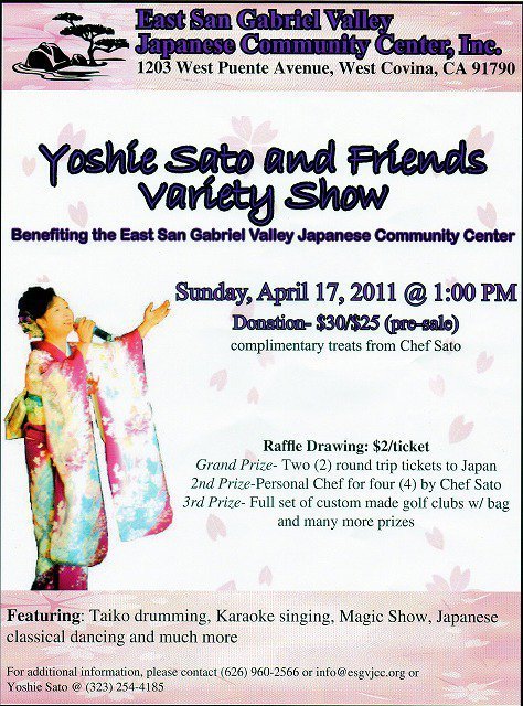 East San Gabriel Valley Japanese Community Centerにて、Yoshie Sato & Friendsによる、バラエティーショーが行われます。