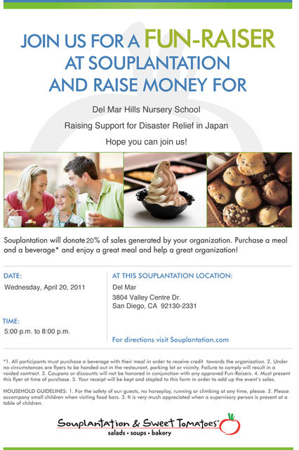 Del Mar Hills Nursery School主催、東北大震災の被災者への募金活動を行います。