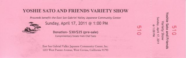 4月17日のウエスト・コビナでのショーは、ウエスト・コビナの日系コミュニティへの寄付の目的で行うことになってました。