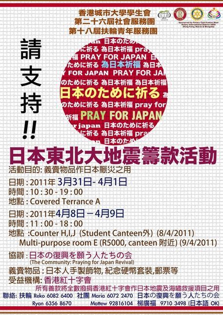 Entrance fee で集まったものは全て東北大震災の義援金として日本人会を通して日本赤十字社の方に寄付させていただきます。