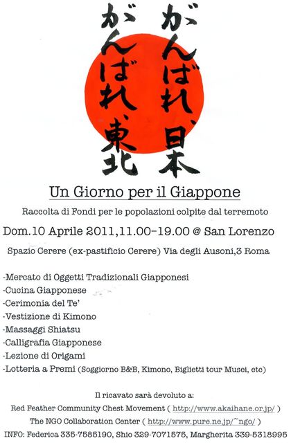 ローマで日本の震災被害者支援のためチャリティーイベントが開催されます。
