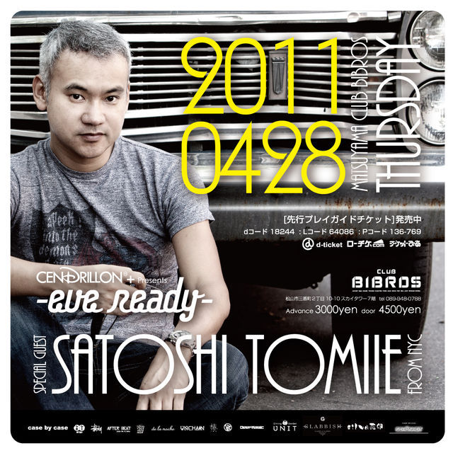 管理人様、告知失礼致します。 ゴールデン・ウィーク オープニングに勢い付けてくれるに相応し過ぎる! 贅沢過ぎる!! 超豪華なスペシャルゲストが初来松決定!!! 世界で絶大な支持を受ける日本を代表するリヴィングレジェンド!!! □SATOSHI TOMIIE□です!!! 中々聴く事の出来ない世界的DJ/サトシ・トミイエを生で体感して下さい。 -eve ready- "SATOSHI TOMIIE|GOLDENWEEK OPENING PARTY" 2011/04/28/THU(祝日前) @club BIBROS OPEN 22:00 ■ADV: \3,000|DOOR: \4,500|W/F¥3,500 □プレイガイド