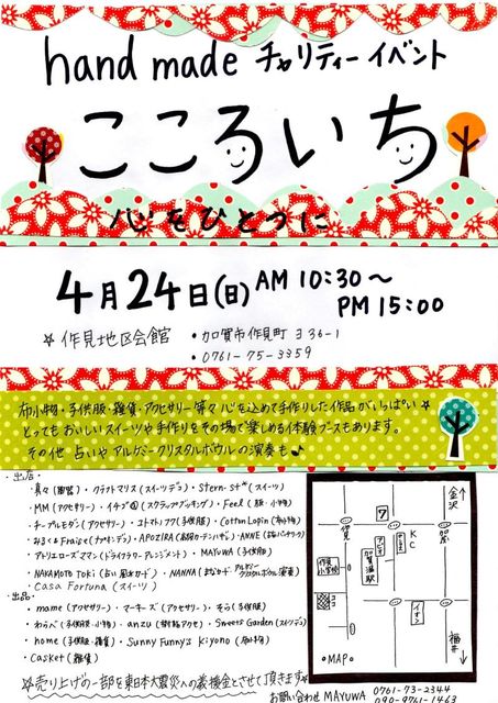¤³¤³¤í¤¤¤Á 4·î24Æü¡ÊÆü¡Ë£±£°¡§£³£°¡Á£±£µ¡§£°£°¤Þ¤Ç ºî¸«Ã϶è²ñ´Û ²Ã²ì»Ôºî¸«Ä®¥è£³£¶¡Ý£± ¥Á¥ã¥ê¥Æ¥£¥¤¥Ù¥ó¥È³«ºÅ¤·¤Þ¤¹¡ª¡¡ ¥¯¥é¥Õ¥È¥Þ¥ê¥¹¡¡¡Ê¥Ç¥³¥¹¥¤¡¼¥ÄÂθ³¡Ë ¿¿¡¹¡¡¡ÊÆ«´ï¡Ë Stern-st*¡¡¡Ê¥¹¥¤¡¼¥Ä¡Ë MM¡¡¡Ê¥¢¥¯¥»¥µ¥ê¡¼¡Ë ANNE¡¡¡Ê¸ÅÉۥѥåÁ¥ï¡¼¥¯Âθ³¡Ë mame¡¡¡Ê¥¢¥¯¥»¥µ¥ê¡¼¡Ë ¥Þ¡¼¥¡¼¥º¡¡¡Ê¥Ó¡¼¥º¥¢¥¯¥»¡¦¥µ¥ó¥¥ã¥Ã¥Á¥ã¡¼¡Ë ¤ï¤é¤Ù¡¡¡Ê»Ò¶¡Éþ¡¦¾®Êª¡Ë Sunny Funny's kiyono ¡¡(ÉÛ¾®Êª¡Ë ¥æ¥È¥Þ¥È¥Î¥Õ¥¯¡¡¡Ê»Ò¶¡Éþ¡Ë ¥Á¡¼¥×¥ë¥â¥À¥ó¡¡¡Ê