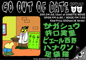 ラスト、4月24日(日)は、恒例高知のバンドによるジャンルレスライブ"GO OUT OF DATE"!!