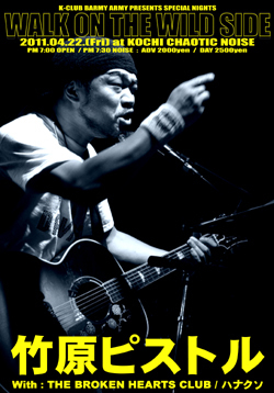 今週末一本目、4月22日(金)は野狐禅解散後、ギター一本担いで全国各地を駆け回り続ける竹原ピストルが再来高!!