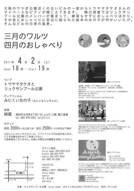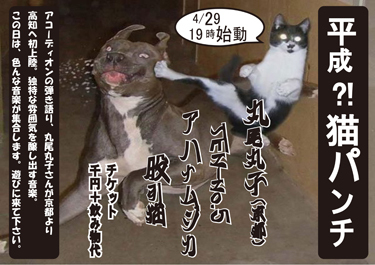 二本目4月29日(金)は、京都より哀愁漂わすアコーディオン弾き語り・丸尾丸子を迎えて行うオペラ企画「平成!?猫パンチ vol.1」!!