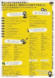 アースデイとは、1970年にアメリカで始まった”地球環境について考える日”。 世界180カ国 毎年10億人以上が参加する 世界各地で行われるイベントです。 「アースデイさせぼ2011」は今回で2回目になる佐世保で開催されるイベントで、 『暮らしからつながるその先へ。わたしとあなたと、明日からこの街でできること。』 をテーマに音楽・飲食・物販・ワークショップなどなどたくさんの方が参加されます。 いろいろ考えるところはありましたが、今回は、2co cafe も参加させていただく事になりました