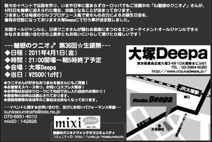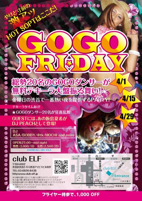 1時までに入場→男性1000円/0D、女性1000円/2D