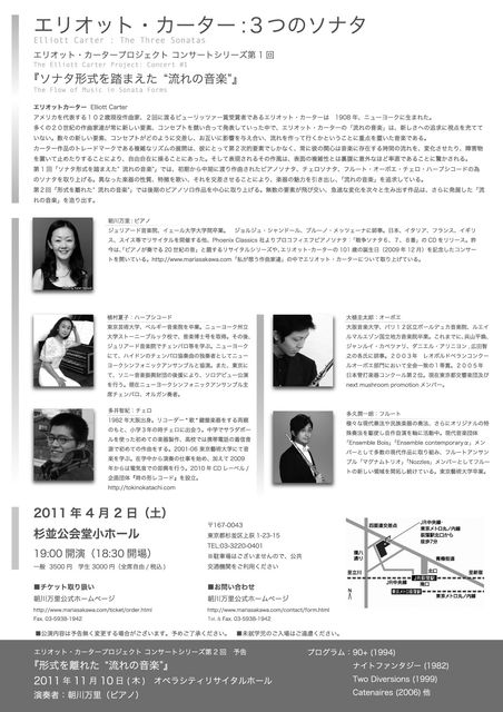 エリオット・カーター プロジェクトコンサートシリーズ第一回