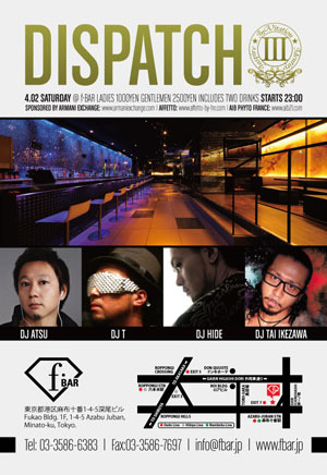Door: LADIES 1000yen or $10 w/1D, MEN 1500yen or $15 w/1D