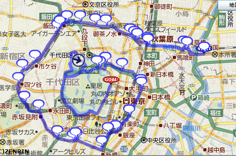 開催直前ですが干名募集中です。 今回の深夜ポタリングは初心に帰って都内中心部、それも江戸城に縁のある 地域をのんびりと走りながら、ついでに夜桜も楽しもうと言う趣旨でコースを 組んでいます。 あえて満開時ではなく遅めの日程にしたのですが、どうも満開時期の開催と なりそうです。 <開催日時・集合場所> 2010年4月9日(土) 22:30集合(時間変更しました/深夜のイベントです) 途中参加、途中退出OKです。 回向院山門前(靖国通り沿いで東京両国シアターΧの100m程皇居側) http://bit.ly/hqdBkX <予定ルート>