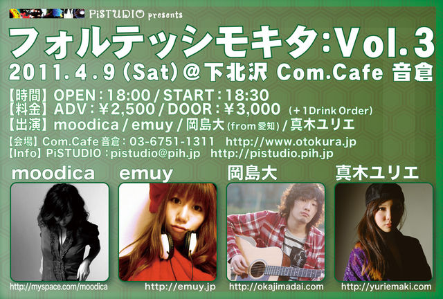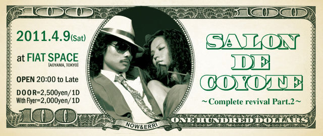 Door: LADIES 1000yen or $10 w/1D, MEN 1500yen or $15 w/1D