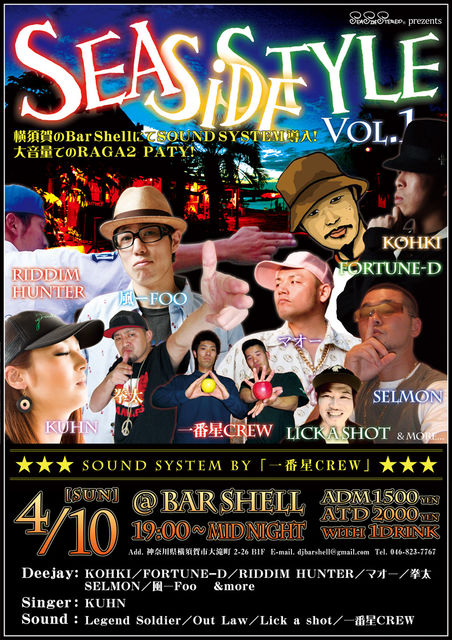 管理人様、書き込み失礼します。 日本を元気にしたい!! 横須賀〜 4月10日 日曜日 「横須賀 SEA SIDE STYLE Vol.1」 DJ BAR SHELL 横須賀市大滝町2-26-1-B1F TEL:046-823-7767 19:00〜MIDNIGHT with FLYER \1500-1d ATD \2000-1d 当日は会場内に東日本大震災への募金箱設置!! ※集めさせていただいた「募金」と「チケットの売上金の一部」を、 震災の被災地に代表者が責任をもって募金させていただきます。 ■Deejay≫ 風-Foo KOHKI FORTUNE-D RIDDIM HUNTER 拳太 SELMON