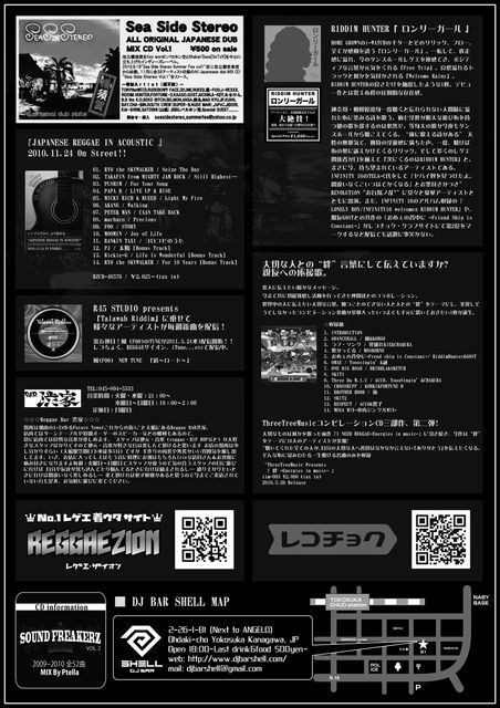 管理人様、書き込み失礼します。 日本を元気にしたい!! 横須賀〜 4月10日 日曜日 「横須賀 SEA SIDE STYLE Vol.1」 DJ BAR SHELL 横須賀市大滝町2-26-1-B1F TEL:046-823-7767 19:00〜MIDNIGHT with FLYER \1500-1d ATD \2000-1d 当日は会場内に東日本大震災への募金箱設置!! ※集めさせていただいた「募金」と「チケットの売上金の一部」を、 震災の被災地に代表者が責任をもって募金させていただきます。 ■Deejay≫ 風-Foo KOHKI FORTUNE-D RIDDIM HUNTER 拳太 SELMON マオ
