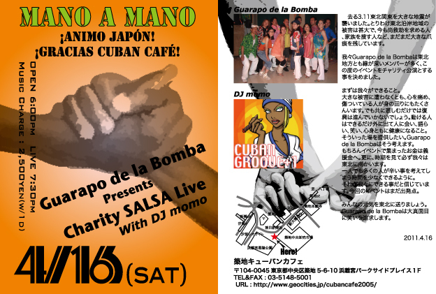 日本では数少ない女性ラテンピアニスト、仲田美穂が率いるCorazon Latino。今回はOrquesta del SolとOrquesta de la Luz etc.、日本を代表する2大サルサバンドなどで活躍中のベーシスト・渋谷和利と、ドラムにOrquesta del SolにGrupo Chevereなどなどで大人気の美座良彦!さらに同じくOrquesta del SolとOrquesta de la Luzのスーパー・トランペッター佐久間勲!そしてボーカルにOrquesta de la LuzのJINをむかえた超豪華スペシャルバージョンでお送