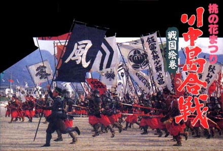 山梨県で4月には武田月間といわれるぐらい色色なお祭りがありますが、4月中旬に笛吹市にて行われる「川中島合戦絵巻」に参加してみませんか。 我こそはと思う方、是非ご参加を。 2011年4月に向けてコミュをつくっていますので、参加希望の方はメッセージをくださいませ。 http://mixi.jp/view_community.pl?id=3263225 以下はコミュの詳細です。 ―――――――――石和[川中島合戦]戦国絵巻――――――――― このコミュニティは、2011年4月17日(日)もしくは4月10日(日)に行われるお祭、石和川中島合戦絵巻に参加するために発足した