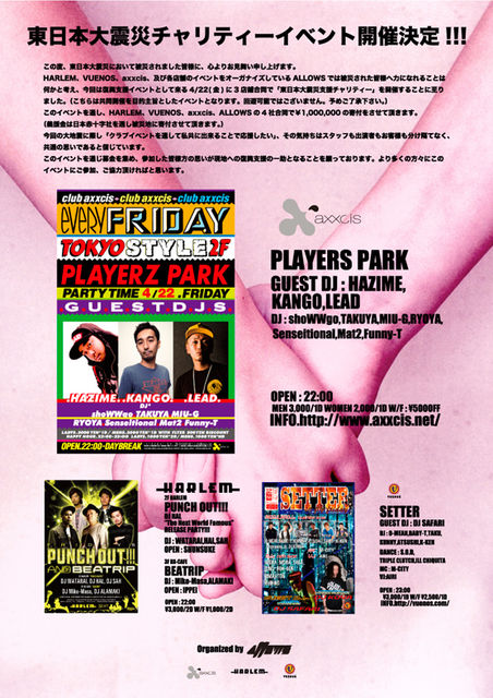 4/22(金)渋谷VUENOS&NEO&GLAD【SETTER】3店舗連動!!大人気週末最高峰BIG PARTY!!超豪華!!渋谷の顔DJ's出演♪ゲスト受付中☆