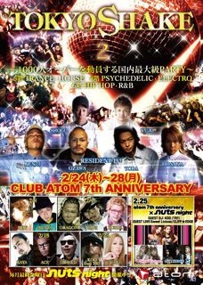 管理人様、告知失礼致します! 渋谷ATOMの金曜と言えば『TOKYO SHAKE』 今回は2周年の特大アニバーサリーパーティ ディスカウントゲスト受付けます ★ご希望の方は、お名前とだいたいの人数を私banjoまでメッセージ下さい★ ★メッセ面倒な方は、1階の受付にて "バンジョのゲストのシェイク" と言ってもらえれば何人でもゲストで入っていただけます★ ゲスト入場料: 女性:12時まで¥1000+2drink、12時過ぎたら¥1000+1drink 男性:12時まで¥1000+No drink、12時過ぎたら¥2000+1drink 3つのフロアご