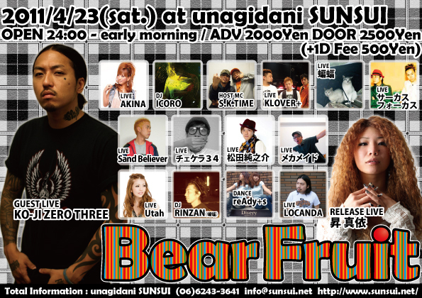 adv 2,500yen/door 3,000yen (without 1drink)
