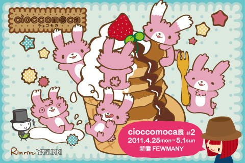 cioccomoca個展 「cioccomoca展#2」 開催期間 2011年4月25日〜5月1日 FEWMANY初登場のcioccomocaです。 cioccomocaは、りんりん&ヤスアキのイラストユニットです。 りんりんは主にうさぎやねこなどの動物をモチーフに、ヤスアキは主に女の子をモチーフにイラストを描いています。 今回はりきって色々な種類の雑貨も販売します。 《ARTIST PROFILE》 cioccomoca(チョコモカ) http://cioccomoca.com ☆りんりん イラストレーター NPO法人日本けん玉協会『けん玉けんくん』キャラクター制作