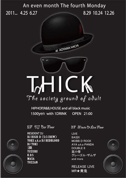 偶数月第四月曜日レギュラーイベントTHICK AT青山蜂。