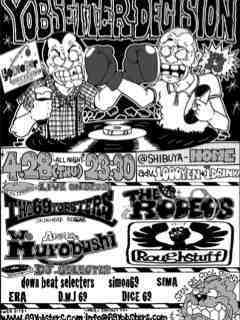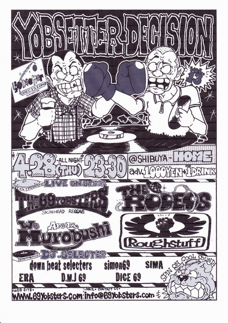 告知させて下さい! "YOBSETTER DECISION Vol.13" Thursday,28th Apr.2011(祝日前夜) @HOME,Shibuya 〒150-0002 東京都渋谷区渋谷 1-10-7 グローリア宮益坂III B1F TEL 03-5774-5822 adv.1,000yen+1D open/start//23:30 Band: THE 69YOBSTERS ROUGH STUFF MUROBUSHI THE RODEOS DJ: downbeat selecters simon69 D.M.J 69 DICE 69 SIMA ERA 震災や原発事故など暗いニュースが溢れている今こそ、最高に楽しい夜にしたいと思っています!皆様のご来場をお待ちしております。