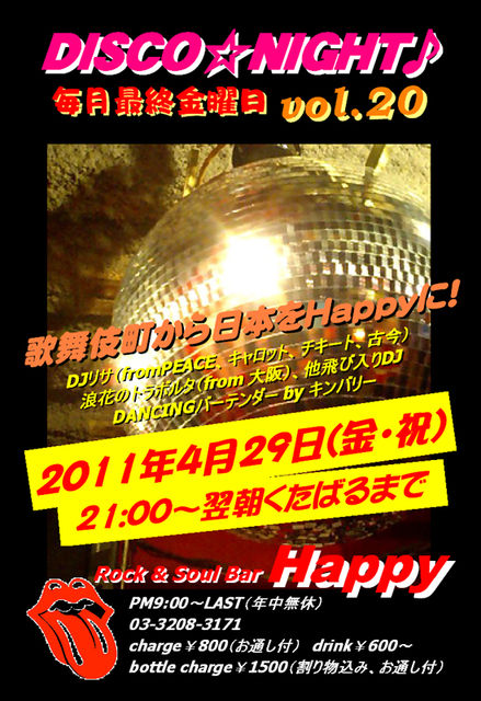Open 7:30pm Start 8pm 東日本大震災募金箱設置