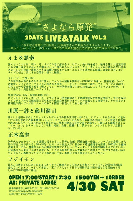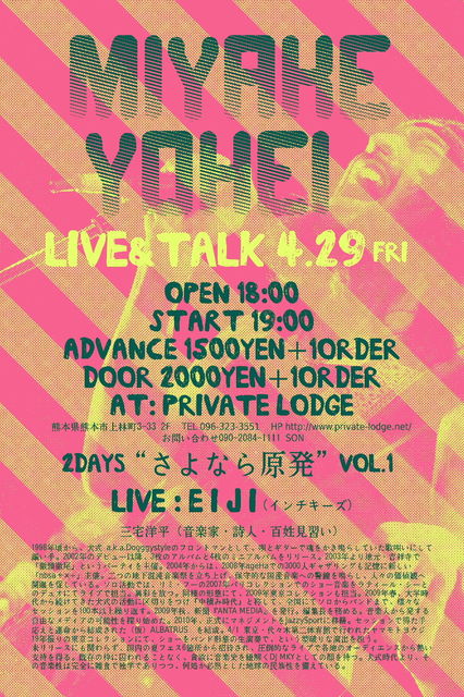 料金:ADM \3000 w/2Drinks (前売り券ご購入者には特典あり)