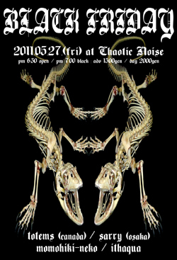 今週末一本目5月27日(金)は、カナダのエクスペリメンタルノイズデュオ"totems"、そして大阪のドローン/アンビエントポップデュオ"sarry"が来高!!