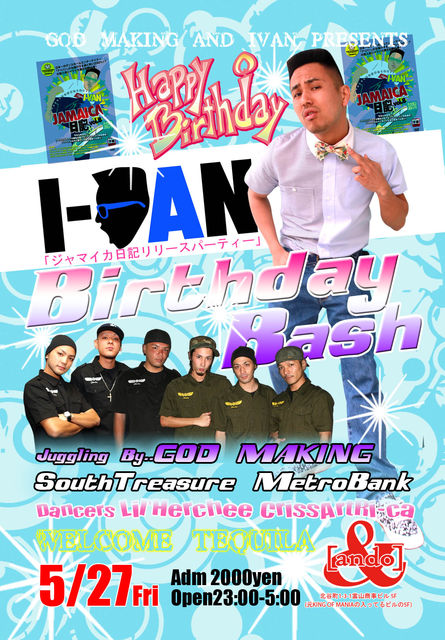 5/27 金曜日 "I-VAN"Birthday Bash & ジャマイカ日記リリースパーティー @ando"&"