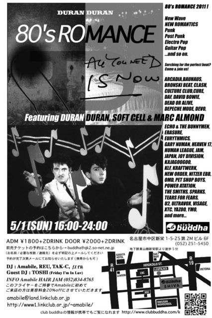 ■ 5/1 (日) 80's ROMANCE Featuring DURAN DURAN, SOFT CELL & MARC ALMOND