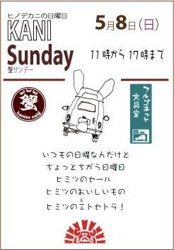 今年のGW、いかがお過ごしですか? たくさんお休み出来て のんびりされた方も クタクタな方も そして ずっとお仕事だったという方も みなさん、おつかれさまです!! それでは しめはやっぱり蟹サンデー ということでどうでしょう。 (ちょっとムリヤリ!?笑) 今月は蟹マルではないので クラフト作家さんの出店はお休みですが いつもの日曜日とはちょっと違う ヒノデカニの日曜日を楽しんでいただけるのでは と 思ってます。 また、8日は彫刻と絵画の小さな作品展「動物と植物」の 最終日でもあります。 ぜひぜひ遊びに