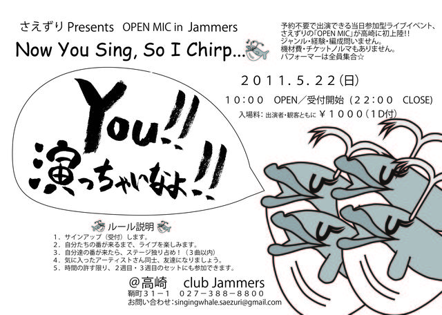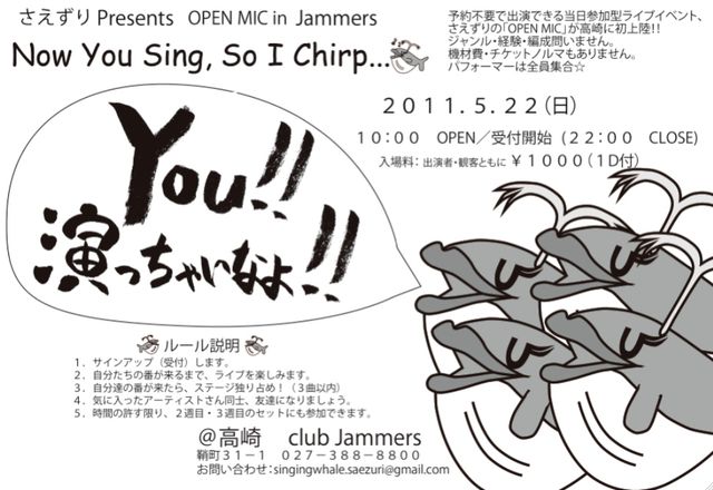 5/22(日)さえずりPresents OPEN MIC in Jammers